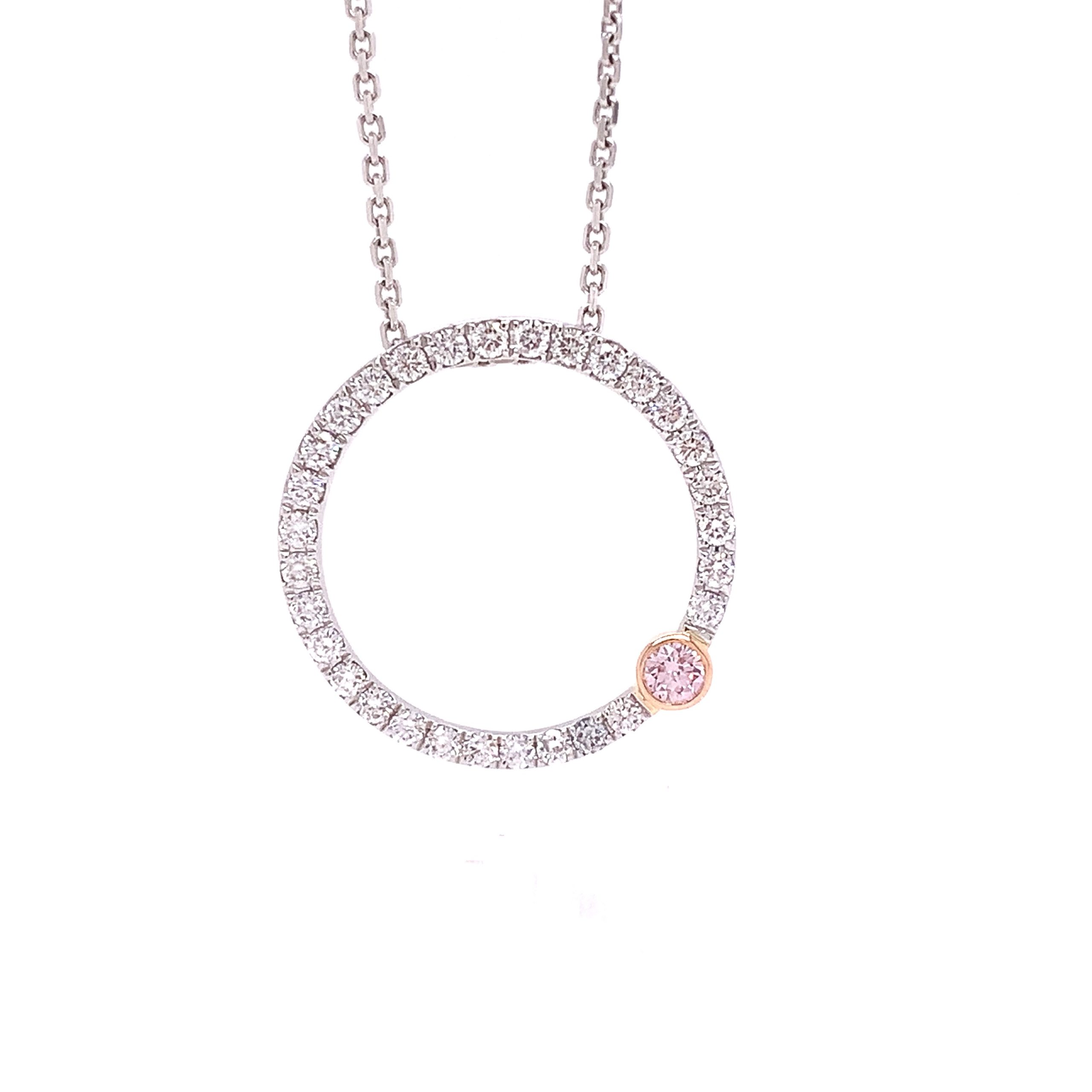 Desert Rose 18ct white and rose gold diamond pendant with a bezel set Argyle pink diamond in a rose gold…