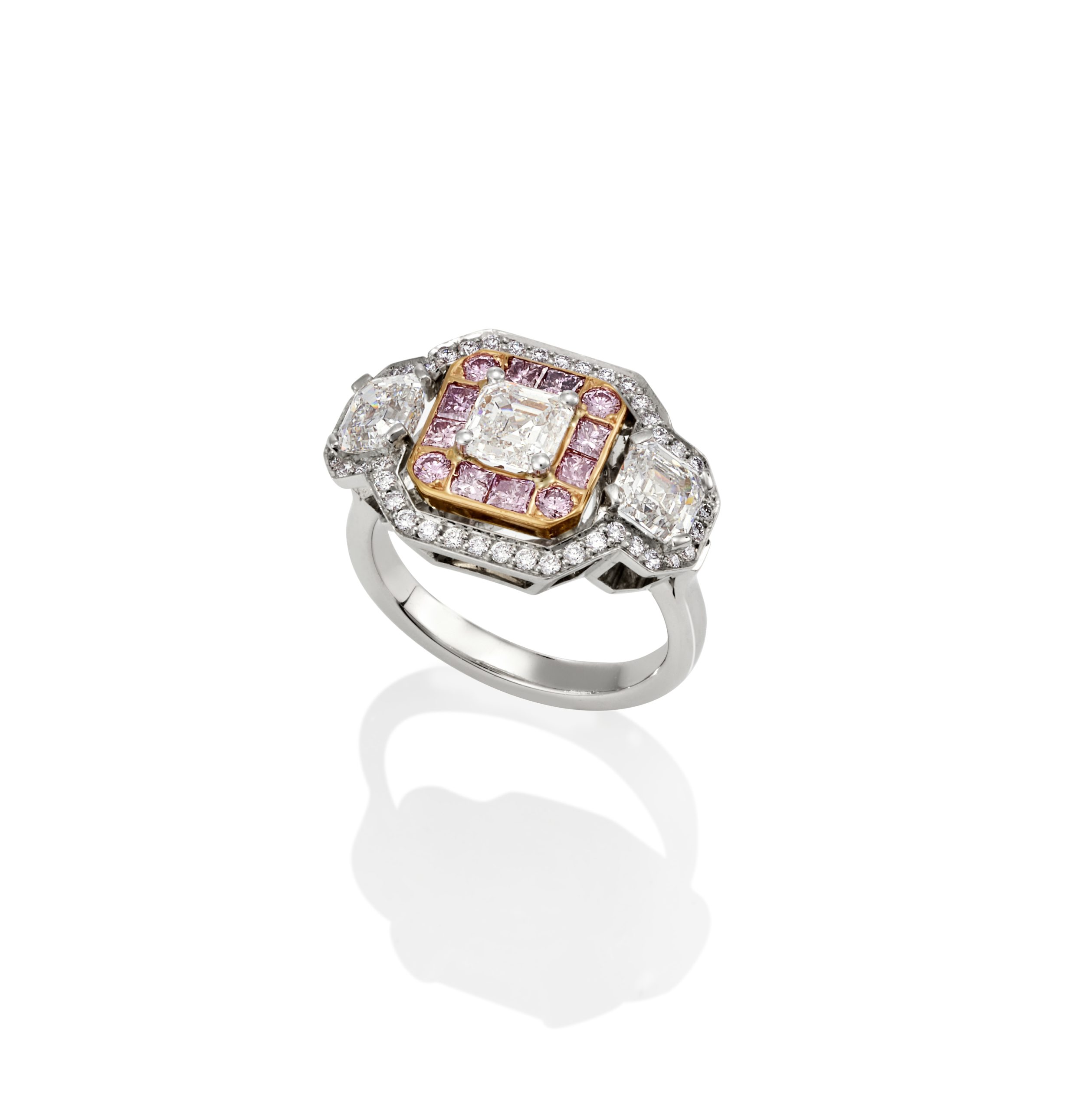 18ct white gold and 18ct rose gold diamond ring, featuring a claw set Argyle round brilliant cut white diamond that…